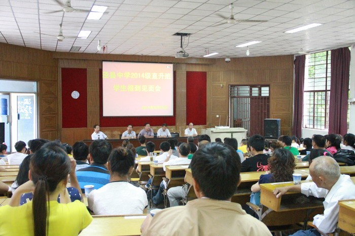 6月25日上午,188金宝博唯一官网_wap.sports918.com在阶梯教室召开了2014级直升班学生报到见面会。学校班子成员,相关处室负责人,全体直升班学生及家长参加见面会。会议由副校长唐述华主持。