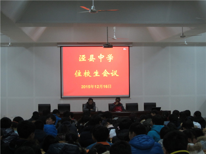 12月16日晚,188金宝博唯一官网_wap.sports918.com在阶梯教室组织了高一、高二年级全体住校生会议,会上,政教处副主任许进首先通报了寝室检查过程中发现的问题,并带领住校生共同学习了住校生管理制度,并号召全体住校生齐心协力,共同营造一个安全、安静的学习、生活氛围,让所有住校生都能够在学校静心学习,共同成长。