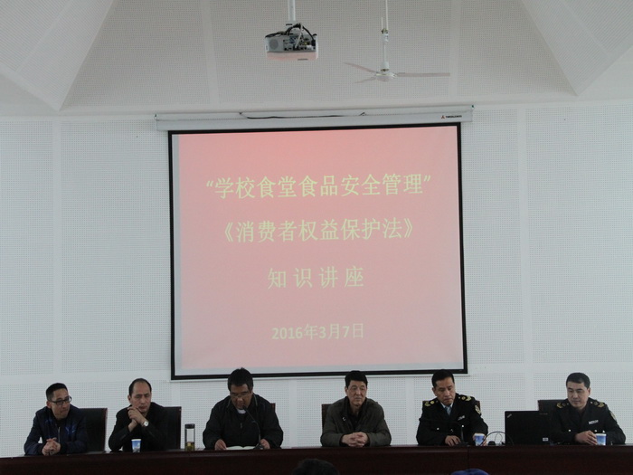 为切实加强188金宝博唯一官网_wap.sports918.com食堂食品安全,全面提升188金宝博唯一官网_wap.sports918.com食堂员工的服务能力和水平,保障全体师生消费权益,为188金宝博唯一官网_wap.sports918.com师生提供更完美的服务,3月7日中午,188金宝博唯一官网_wap.sports918.com特邀请县市场监督管理局食品股股长马剑宽、县消费者协会会长邹武来校,专门为188金宝博唯一官网_wap.sports918.com食堂全体职工开展《食品安全法》和《消费者权益保护法》知识培训。本次培训会议由188金宝博唯一官网_wap.sports918.com总务处主任助理王勇主持,总务处相关人员参加会议。