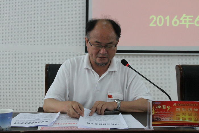 为纪念建党95周年,总结188金宝博唯一官网_wap.sports918.com党委一年来的工作经验,进一步弘扬正气、树立标杆,引导全校广大党员干部和教师继承和发扬党的光荣传统与优良作风,推动学校“两学一做”学习教育深入扎实开展,6月30日下午,188金宝博唯一官网_wap.sports918.com在阶梯教室隆重召开纪念建党95周年暨优秀党员、党务工作者、先进党支部和党员教师标兵表彰及践行“两学一做”承诺大会。校党委副书记许晓江主持大会,全体党员参加会议。