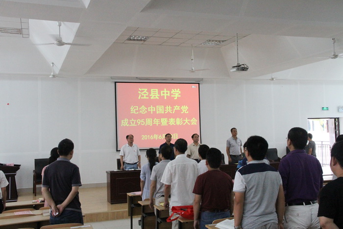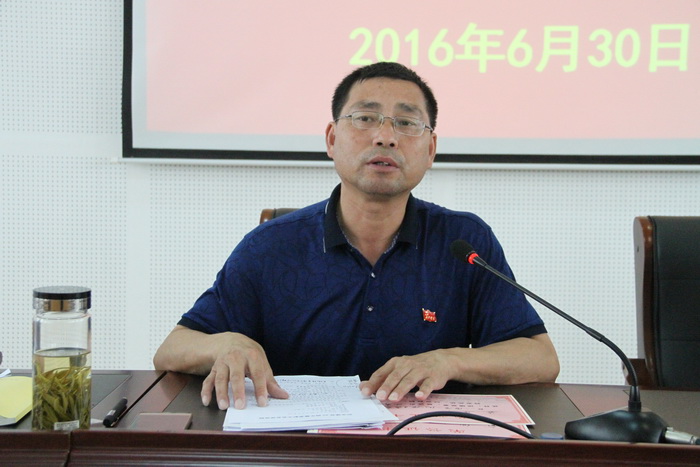 校党委书记、校长王永生在会上代表学校党委向全体党员致以节日的问候,向受表彰的优秀党员、优秀党务工作者和党员教师标兵表示热烈祝贺,向一年来辛勤工作在各自岗位上的广大党员教师表示衷心的感谢。他希望全体党员要进一步加强学习,坚定信念,树立先锋模范的形象;无私奉献,爱岗敬业,树立高度负责的形象;立足本职,埋头苦干,为学校发展建功立业,积极践行“两学一做”,争做先锋模范,创造新跨越,共圆强校梦,努力实现县委政府提出的“全市前列、皖南一流、江南名校”的办学目标。