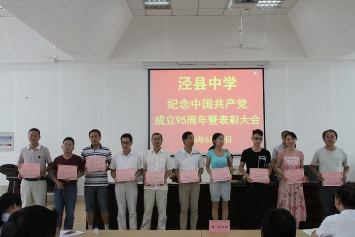 大会在庄严的国歌声中拉开帷幕。校党委委员、副校长佘超俊带领全体党员重温了入党誓词;校党委副书记许晓江传达学习了中国共产党泾县第十三次代表大会精神;校党委委员、校工会主席张渊宣读了县教体工委《wap.sports918.com表彰2015年度先进基层党组织、优秀共产党员和优秀党务工作者的决定》及校党委《wap.sports918.com表彰“两优一先一标兵”的决定》;校党委成员为2015年度校优秀党员、优秀党务工作者、先进党支部及2015—2016学年党员教师标兵颁发荣誉证书。