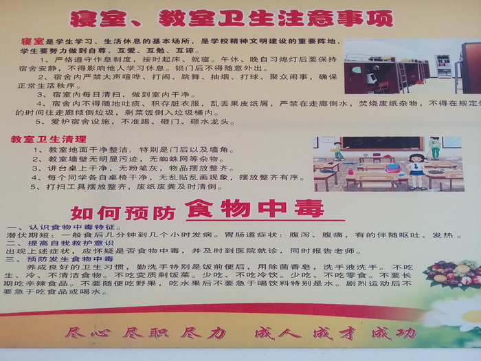 四是强化卫生检查管理,养成一个“实”字。每天保持好教室、楼梯、走廊、广场、操场、校园内外的环境卫生,安排后勤人员定期进行喷药消毒,校医室采取多种措施,消除传染源,切断传染途径,相关人员实实在在做好每项工作。