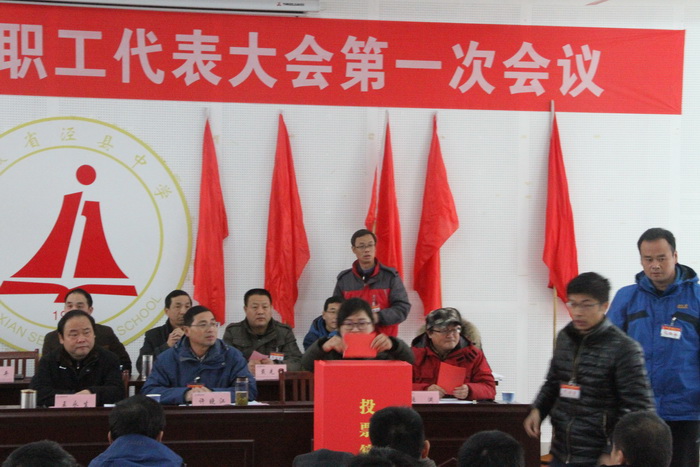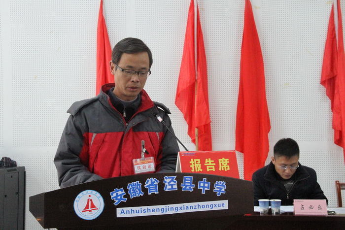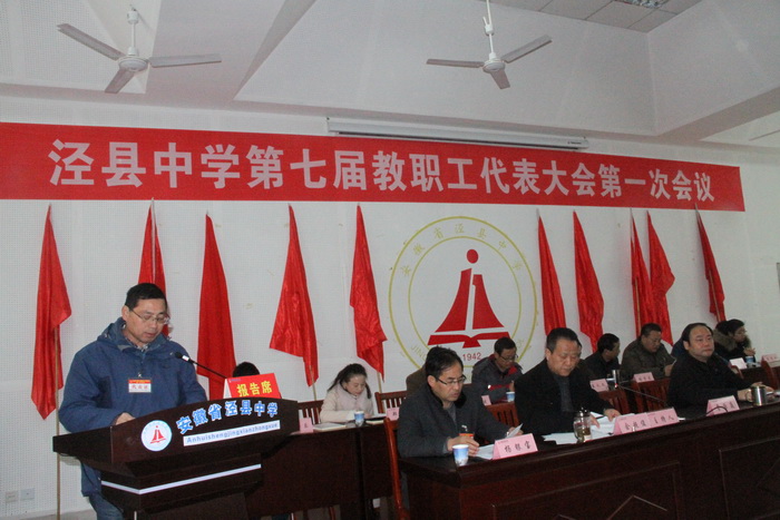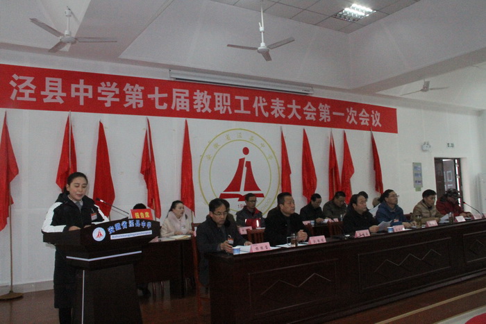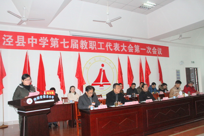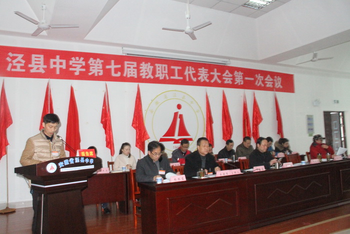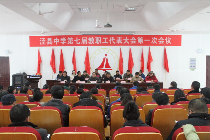 大会审议通过了《泾县中学第七届教职工代表大会第一次会议决议》;校党委副书记许晓江代表学校党委对工会工作提出了希望,校党委委员、校长助理杨银宝致闭幕词。会议号召:全体泾中人要在校党委的坚强领导下,认真学习贯彻党的十八届四中、五中、六中全会精神,紧紧围绕“尽心尽职尽力、成人成才成功”的办学理念,坚持素质教育,坚持文化学校建设,以推进课改为抓手,全面提升教育教学质量;以文明校园、文明单位创建为契机,优化整合教育资源,注重精细化管理,注重提升校园文化品位和全体师生的归属感、使命感和幸福感,造就名师团队,倾力打造“全市前列、皖南一流、江南名校”的“百年名校”和品牌泾中。