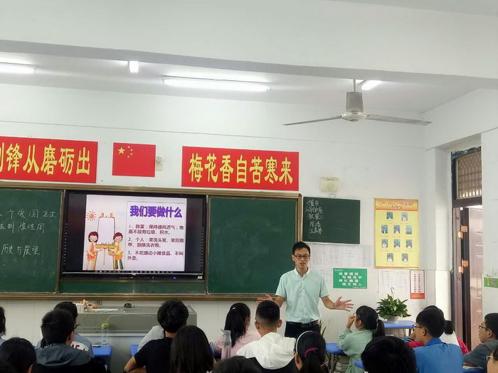 班会活动中,班主任结合第八个爱国卫生法制宣传活动,向学生普及爱国卫生法制化知识,并结合学生实际进行了卫生常识和行为习惯的教育。班主任重点向学生普及了传染病防预知识,要求学生在日常生活中讲究个人卫生,养成良好的卫生习惯,适当参加锻炼,增强身体素质;同时要注意环境清洁,保持室内通风。