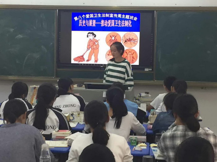 为迎接第八个爱国卫生法制宣传周活动,对学生进行爱国卫生宣传教育,动员学生积极参与,9月25日上午,学校各班级在班主任的带领下召开了“历史与展望—推动爱国卫生法制化”主题班会。