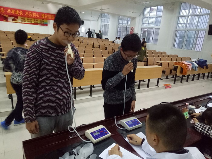 本次体检项目共包括身高、体重、血压、内科、外科、眼科、耳科、口腔科、鼻科等。现场体检中,医务人员对每位学生进行了认真细致地检查,对体检的结果作了如实详细记录,同时还向一些学生提出了有针对性的合理保健建议,引导学生养成良好的卫生习惯;同时,工作人员还走进各个班级,对高一新生进行了全面细致地结核病筛查。在全体医务人员的努力下,在学校各相关部门的密切协作和各班班主任、任课老师的大力支持下,本次体检和结核病筛查工作安全、平稳、有序。