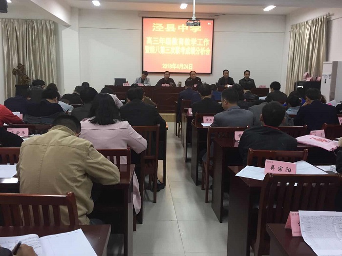 4月24日晚,188金宝博唯一官网_wap.sports918.com在综合南楼302会议室召开高三教育教学暨皖南八校第三次联考成绩分析会,校领导班子成员、高三年级组成员及全体高三教师参加会议。会议由校党委副书记、高三年级部主任许晓江主持。