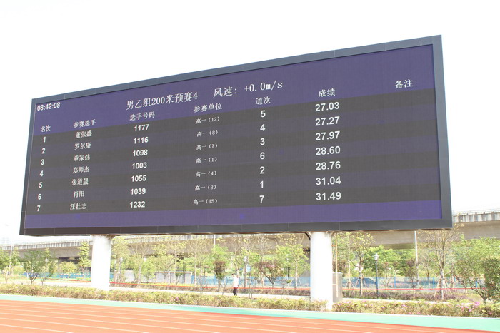 本届运动会上,共有35支代表队498名运动员参赛。其中,甲组男子200米、甲组男子4*100米接力、乙组女子三级跳远、乙组女子跳远共4项比赛成绩打破校运动会记录。本次比赛采用的设备设施是国际比赛标准,径赛终点采用电子摄像计时,并做到各项比赛大屏预报和成绩即时大屏呈现。