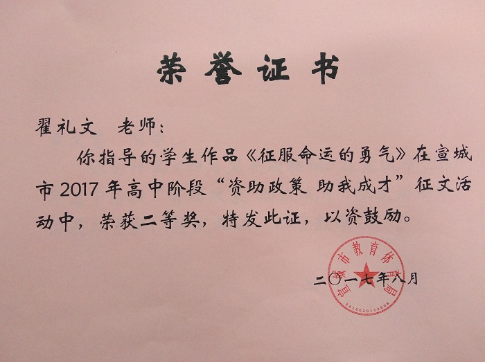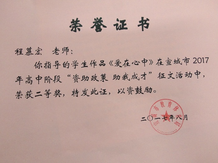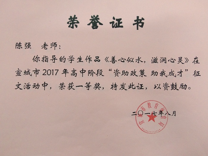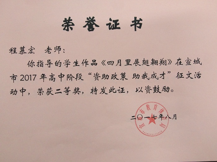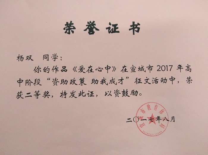 为充分宣传国家资助政策及成效,展现当代学生自强自立、诚信感恩、励志成才的精神风貌,宣传家庭经济困难学生通过资助成长成才的先进事迹,激励更多家庭经济困难学生在国家资助政策帮助下成长成才,宣城市教体局于2017年举办了全市高中阶段“资助政策助我成才”征文活动。