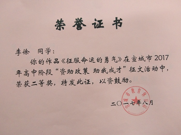 高二(2)班 李徐《征服命运的勇气》