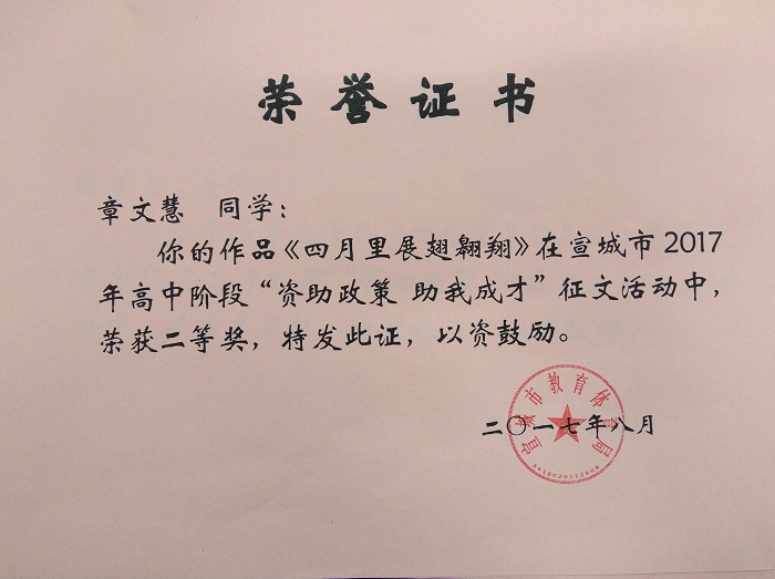 高二(4)班 章文慧《四月里展翅翱翔》