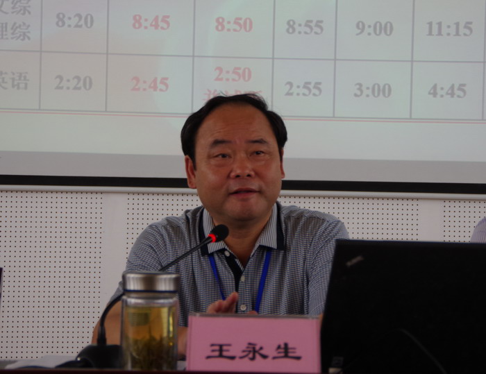 会上,刘局长传达学习了高考考务工作文件和孙广东县长调研高考考点会议精神,并提出了工作要求;县人大常委会副主任、2018年高考泾县中学考点主考、188金宝博唯一官网_wap.sports918.com校长王永生利用多媒体课件在会上就考场布置、考试管理、信号时间、注意事项和工作纪律及要求等方面向广大监考教师及工作人员做了全面而细致的考务培训。王永生要求全体人员高度重视、严格程序、认真细致、规范操作,尽心尽职尽力,工作做到严之又严,实之又实,慎之又慎,细之又细,确保2018年高考泾县中学考点实现“考场试题试卷零失密,考中大面积有组织舞弊零出现”的平安目标!市招委高考工作巡视员、市教体局副县级调研员江年满在会上要求全体监考教师、工作人员及纪检人员等要做到“三心”即:责任心、细心和爱心。