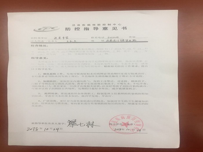当前已进入流感、水痘等传染病的高发季节,为了进一步加强188金宝博唯一官网_wap.sports918.com传染病的防控工作,10月25日上午,188金宝博唯一官网_wap.sports918.com特邀请县疾病控制中心卫生防病科长张树林等一行来校指导疾病防控工作。