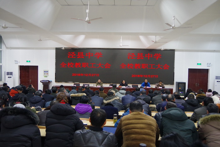 12月27日下午,188金宝博唯一官网_wap.sports918.com在阶梯教室召开全体教职工大会。县人大常委会副主任、校党委书记、校长王永生主持会议,全体教职工参加会议。
