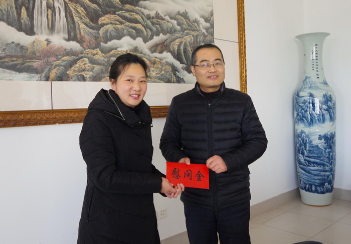 1月24日下午,县政府副县长杨培靖、县教体局局长刘朝阳一行来188金宝博唯一官网_wap.sports918.com看望慰问县人才库专家程慕宏老师,为他送来党和政府的关怀和新春的祝福。