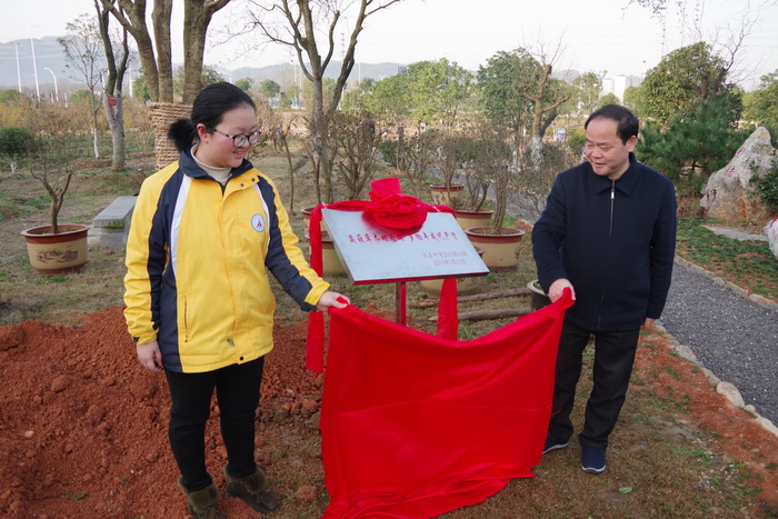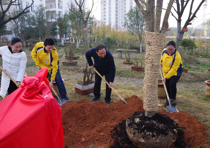 活动中,王校长和学生一起参与其中,有的挖坑、有的扶树、有的培土、有的洒水 ,忙的不亦乐乎,师生用自己的行动,诠释了植树节的含义。接着,王校长和高二(18)班学生代表一起共同为“葳蕤”植树牌揭幕。“葳蕤草木时为瑞,岁物丰成代产贤”,期待班级能像这棵桂花树一样繁茂成长,丰收产贤,香飘四方。