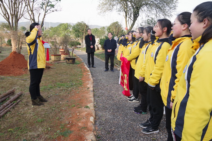 王校长在讲话中对高二(18)班学生用零用钱集赞起来为学校捐赠桂花树,并种植在学校牡丹园这一有意义的活动表示肯定和赞赏。王校长简要介绍了植树节由来,他殷切希望学生们要刻苦学习,立志成才,做一名对祖国对人类社会有贡献的人;团结友爱,奋发向上,共同进步,建设班级,树立楷模;热爱祖国,热爱家乡,热爱学校,热爱班级,成人成才成功,用练就的本领为祖国建功立业,实现人生理想抱负。