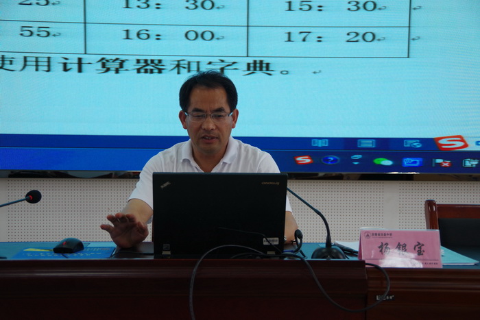 会上,副校长杨银宝利用多媒体课件就各组具体分工及工作职责、考试科目及时间安排、考场布置、工作纪律及要求等方面向广大监考教师及工作人员做了全面而细致的考务培训,并提出了工作要求。