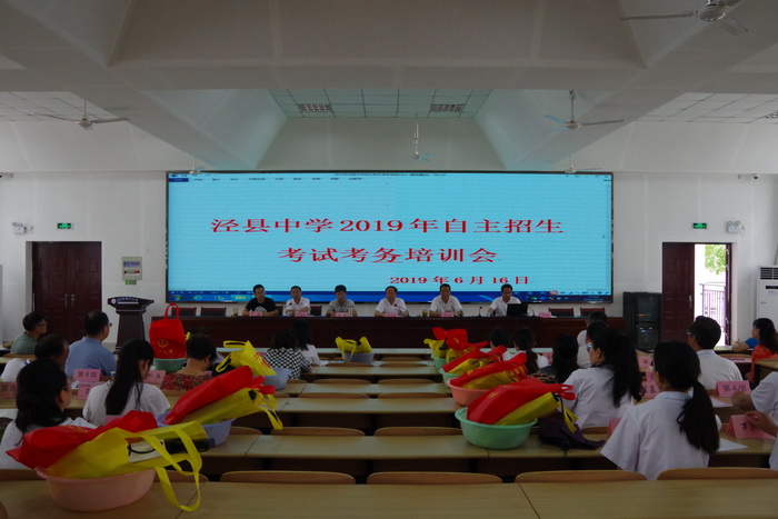 6月16日下午,188金宝博唯一官网_wap.sports918.com在阶梯教室召开2019年泾县中学自主招生考试考务培训会。会议由县人大常委会副主任、校党委书记、校长王永生主持。