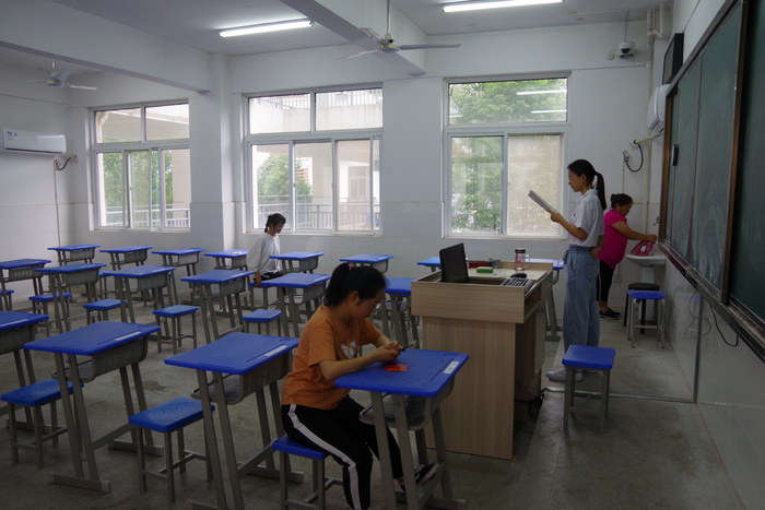 会后,各监考教师对考场进行了精心布置,教导处工作人员对考场进行了严格检查和验收。4:30,各考场向全体学生及家长开放。