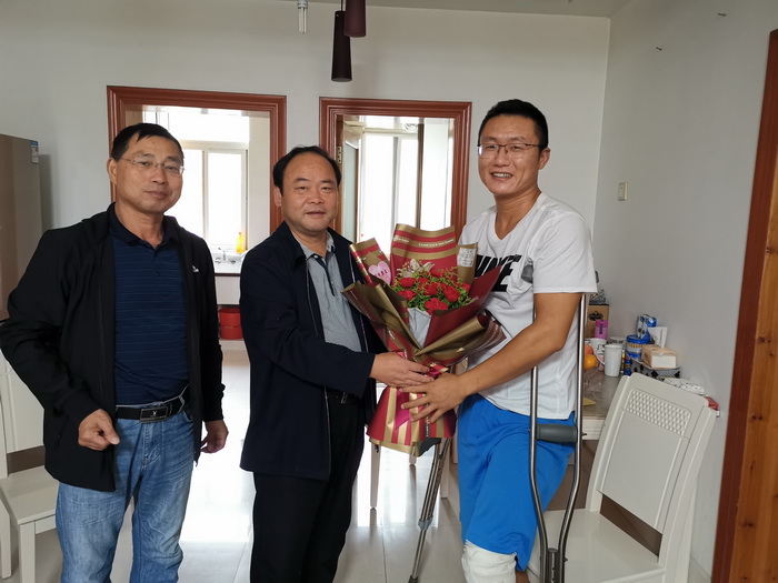 占必乐老师对学校领导的上门看望表示深深的感谢,同时表示一定不辜负学校的期望,安心养伤,尽快的恢复到最佳状态回到学校,投入到教育教学工作中去,为学校的可持续发展做出自己的一份努力。