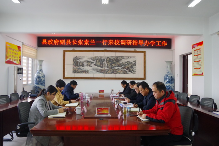 11月28日下午,县政府副县长张素兰一行来188金宝博唯一官网_wap.sports918.com调研指导办学工作,教体工委书记、县教体局局长刘朝阳陪同调研,188金宝博唯一官网_wap.sports918.com班子成员参加调研座谈会。