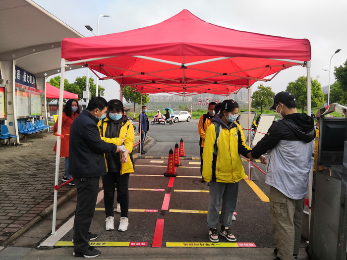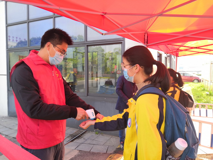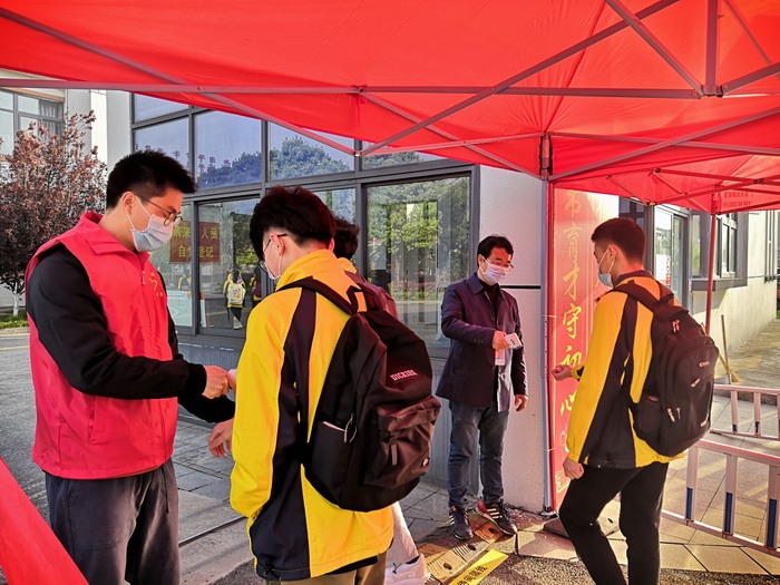 早上6时多,县人大常委会副主任、校党委书记、校长王永生等校领导就到校督查、组织、协调学生返校复课复学工作。早上7时前,各位老师和工作人员各就各位,各司其职,分时段、分区域有序接待同学们的返校。高二年级17个班采取错峰和分批分散的方式从三个大门有序入校。顺着排队入校的队伍看去,学生们都戴着口罩保持距离,经过体温监测正常后方可入校,每一个环节都有工作人员的监督和指导,保证学生有序进校。返校当日,188金宝博唯一官网_wap.sports918.com各校门口秩序井然,重返校园的师生们以饱满的热情迎来新学期。