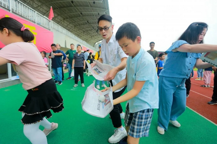 因孩子们的年龄层次不等,设计活动内容时既要考虑到各年龄段孩子的参与度,又要保证游戏的趣味性,学校经过前期筹备,设置了7周岁以下、7-10周岁和十周岁以上甲、乙、丙三队,并精心设计了“青蛙跳荷叶”、“高山流水”、“正话反说”等多个游戏环节。活动中,孩子们个个生龙活虎,奋力拼搏,笑声、欢呼声此起彼伏,很快奥体中心运动场就变成了欢乐的海洋。孩子们在父母的陪同下,充分体验了游戏的乐趣,感受了亲子互动的温情,通过亲子互动,既促进了孩子与家长之间的密切配合,又增加了彼此的感情,一场趣味亲子比赛更是拉近了大家的距离。