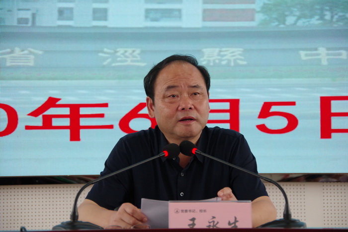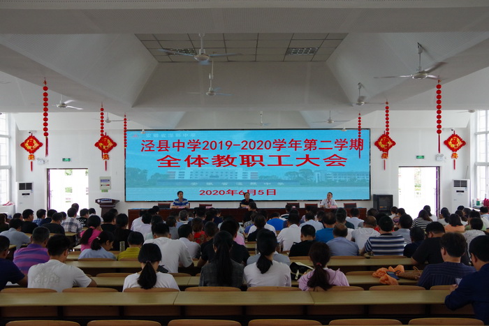 6月5日上午,188金宝博唯一官网_wap.sports918.com在阶梯教室召开2019-2020学年第二学期全体教职工大会,县人大常委会副主任,校党委书记、校长王永生主持大会。