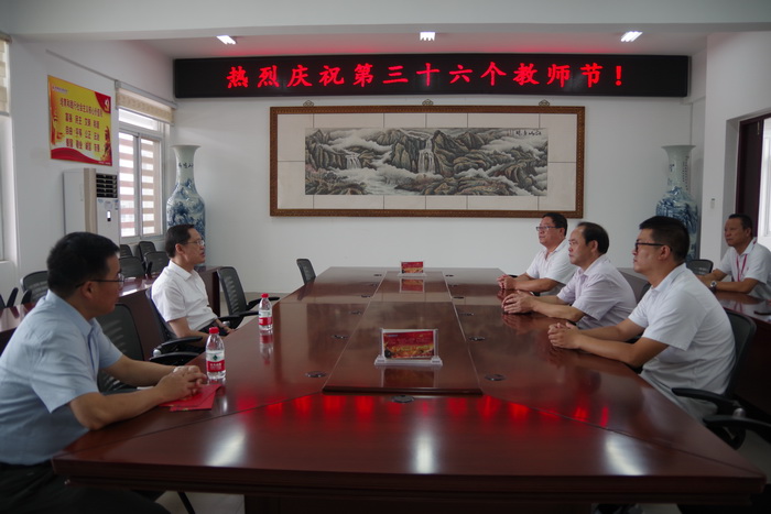 正值庆祝第36个教师节,9月10日上午,县委书记耿鹏莅临188金宝博唯一官网_wap.sports918.com亲切看望慰问优秀教师代表王炜和董正峰两位老师,并向辛勤耕耘在教育一线的188金宝博唯一官网_wap.sports918.com广大教师致以节日的祝贺和诚挚的问候。县教体工委书记、局长刘朝阳陪同,188金宝博唯一官网_wap.sports918.com班子成员参加座谈。