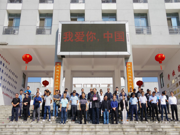 “我爱你,中国!”杨校长向祖国母亲大声表白。他向大家介绍了新中国成立71年来经济发展的巨大成就,提醒大家中华民族在走向复兴的道路上也曾备受欺凌,勿忘国耻、奋力前行,中国特色社会主义的航船正劈波斩浪,昂首前行。