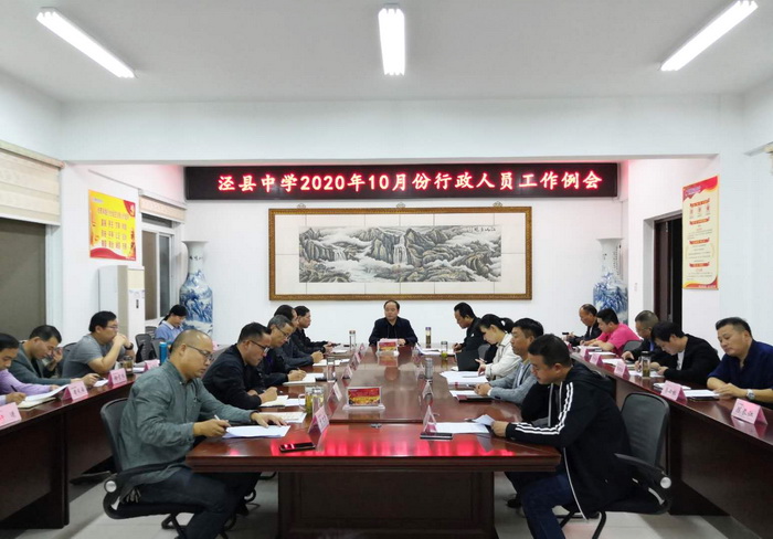10月12日晚,188金宝博唯一官网_wap.sports918.com在综合南楼401会议室召开10月份行政人员工作例会,全体行政人员参加会议。县人大常委会副主任,校党委书记、校长王永生主持会议。
