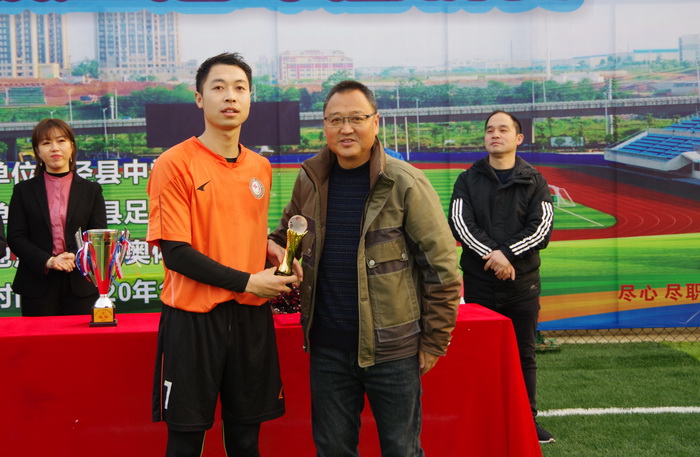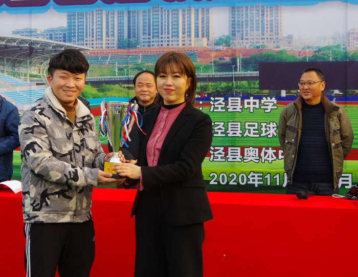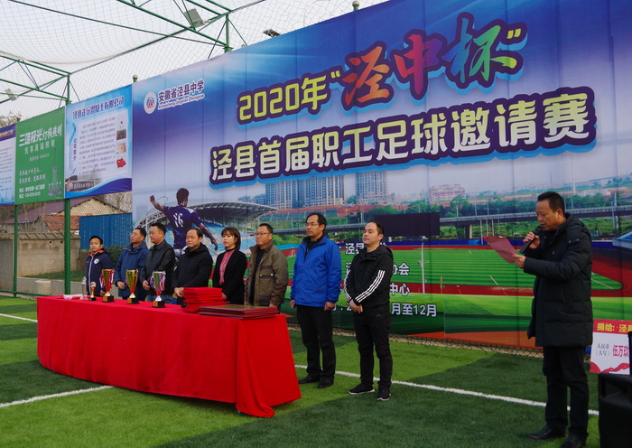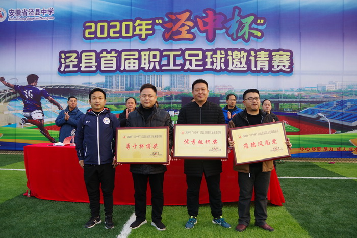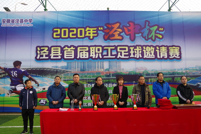 2020年“泾中杯”泾县首届职工足球邀请赛闭幕式由188金宝博唯一官网_wap.sports918.com副校长佘超俊主持。仪式上,本次大赛裁判长吕辉宣布了比赛成绩;出席闭幕式的领导为获奖联队一一颁奖。最后,县人大常委会副主任、188金宝博唯一官网_wap.sports918.com党委书记、校长王永生宣布:2020年“泾中杯”泾县首届职工足球邀请赛顺利闭幕。