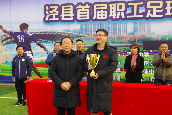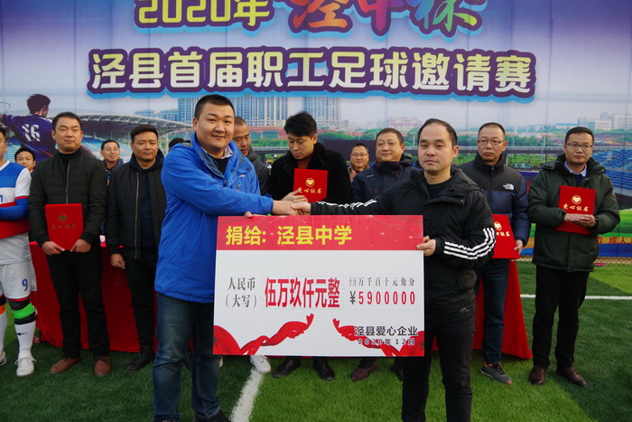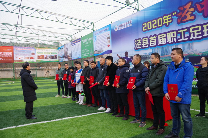 12月6日下午,2020年“泾中杯”泾县首届职工足球邀请赛闭幕式暨泾县中学捐资助学活动在泾县奥体中心足球场举行。县人大常委会副主任、188金宝博唯一官网_wap.sports918.com党委书记、校长王永生,泾县教体工委委员、教育局副局长雷敏,泾县足球协会名誉主席、泾县电信公司总经理左波,泾县足球协会顾问、泾县自然资源和规划局副局长葛峰,泾县足球协会会长李军、188金宝博唯一官网_wap.sports918.com班子成员及各爱心企业、运动员、裁判员共同出席闭幕式。