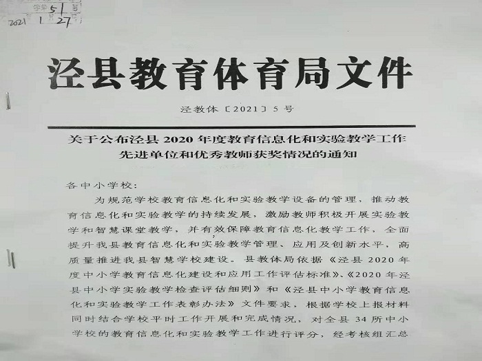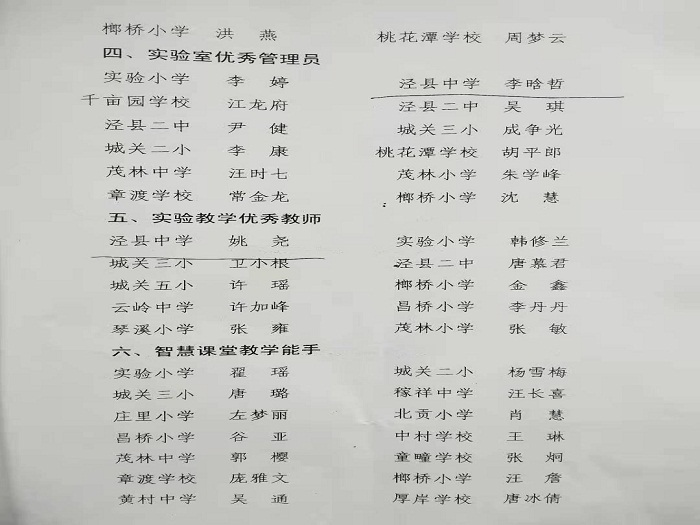 为进一步规范学校实验教学设备的管理,推动实验教学的可持续发展,激励广大教师积极开展实验教学,日前,在泾县2020年度实验教学检查评估中,188金宝博唯一官网_wap.sports918.com青年教师李晗哲荣获实验室优秀管理员、姚尧荣获实验教学优秀教师称号。