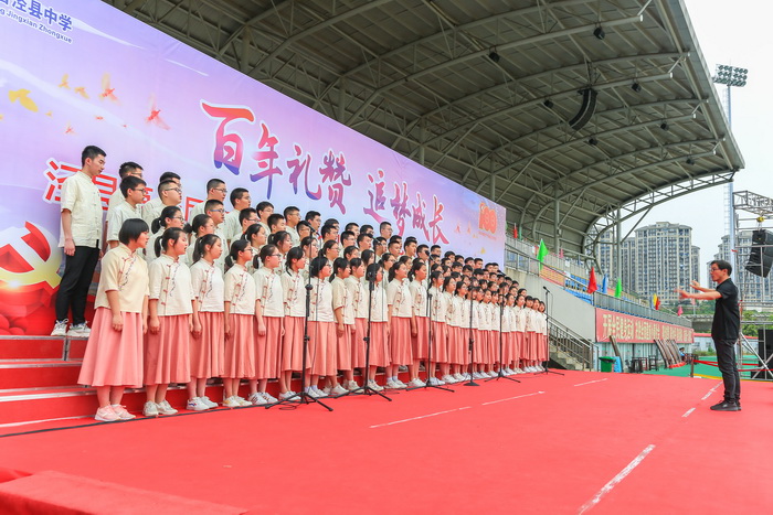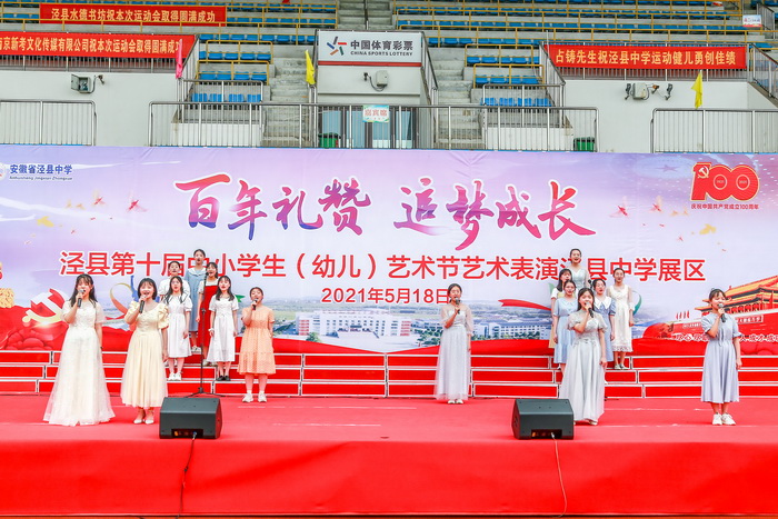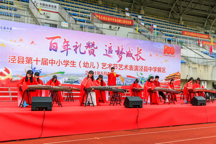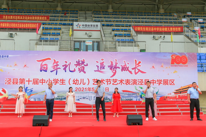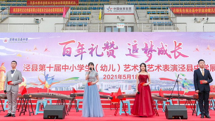 百年青春梦,拥抱新时代。为迎接中国共产党百年华诞,展示艺术教育成果,5月18日,泾县第十届中小学生(幼儿)艺术节艺术表演泾县中学展区成功展演,并开启了线上直播向广大师生家长开放。县人大常委会副主任、188金宝博唯一官网_wap.sports918.com党委书记、校长王永生,县教体工委委员、副局长雷敏,县教体局基教股股长王群,县教体局基教股蔚秀丽老师,市工业学校高级音乐教师翟晓芹,全国魅力新星大赛优秀辅导教师、安徽省声乐协会会员、宣城市音乐教育学会理事、泾县二中音乐教师冯大兵等嘉宾及188金宝博唯一官网_wap.sports918.com班子成员出席演出。现场座无虚席,气氛热烈,188金宝博唯一官网_wap.sports918.com师生家长欢聚一堂,载歌载舞,用精彩的表演向中国共产党百年华诞献礼。