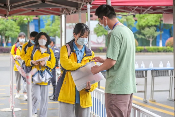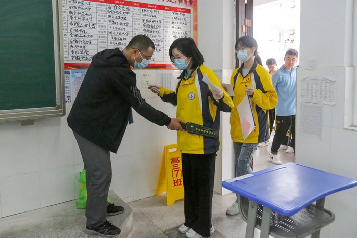 本次全真高考模拟考试严格按照高考要求,从考场布置、座位模式、监考教师安排、金属探测仪安检、考试播报、考试试卷样式、试卷收发、安全警戒、视频监考、校园消杀等诸多细节方面着手组织进行,让学生身临其中,克服心理障碍,缓解考试压力,掌握应试技巧,积累实战经验,为即将到来的2022年高考做好充分的准备。特别是疫情防控工作,除正常进行考点全面消毒、进考点测温和健康承诺书检查等外,按最新要求增加了“一门二通道”的有序测温核验、考生消毒区等,新增开展了安康码、行程码、48小时核酸检测阴性报告核查等工作,确保疫情防控工作万无一失。