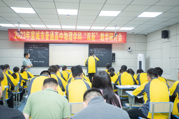 为进一步帮助普通高中物理教师准确理解新课标,科学合理使用新教材,提升我市高中物理教师课堂教学能力,4月20日,由市教研室组织的2023年宣城市普通高中物理学科“双新”教学研讨会在188金宝博唯一官网_wap.sports918.com举行。宣城市及各县(市、区)的物理教研员、全市各普通高中高一、高二物理教师共70余人参加本次研讨,188金宝博唯一官网_wap.sports918.com全体物理教师积极参与了此次活动。