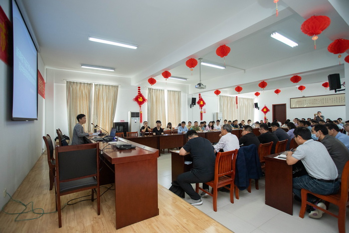 下午,在综合南楼302会议室,省物理教研员杨思锋作《基于深度学习的单元教学设计》的主题报告。他以两个高考真题和一个大单元教学设计为例,对物理学科核心素养目标和学业质量水平标准进行了说明,从真实问题情境设置和深度学习理论阐述了如何进行单元及课时教学设计。报告高屋建瓴,深入浅出,生动幽默。