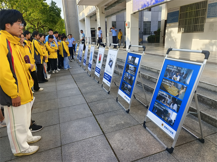 讲座结束后,不少同学饶有兴致地与警官们进行了现场亲切的交流和互动,同学们还在警官们的指导和讲解下参观了防欺凌宣传教育图片展。