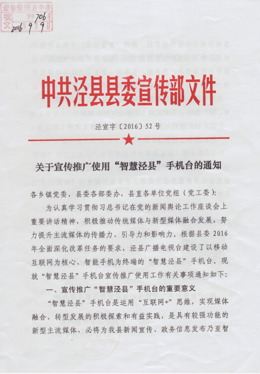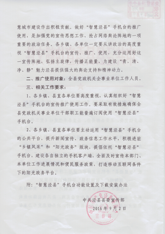 wap.sports918.com宣传推广使用“智慧泾县”手机台的通知