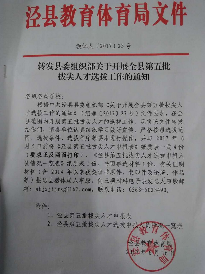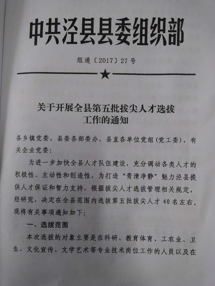 转发县委组织部wap.sports918.com开展全县第五批拔尖人才选拔工作的通知