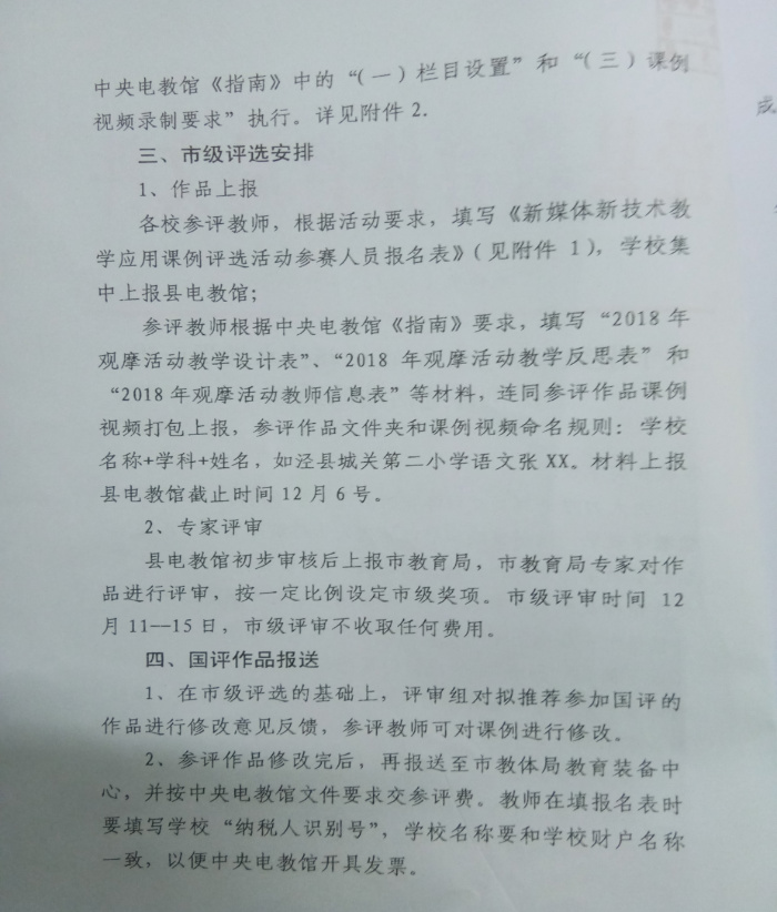 1.必须是完整的一个标准课时的课。小学40分钟、初中40分钟、高中45分钟、幼儿园20分钟左右。除幼儿园外,参评课例超时或提前3分钟以上结束的取消评审资格。