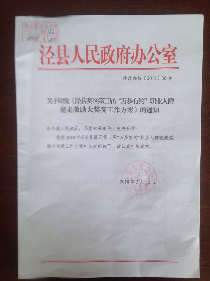 wap.sports918.com印发《泾县赛区第三届“万步有约”职业人群健走激励大奖赛工作方案》的通知