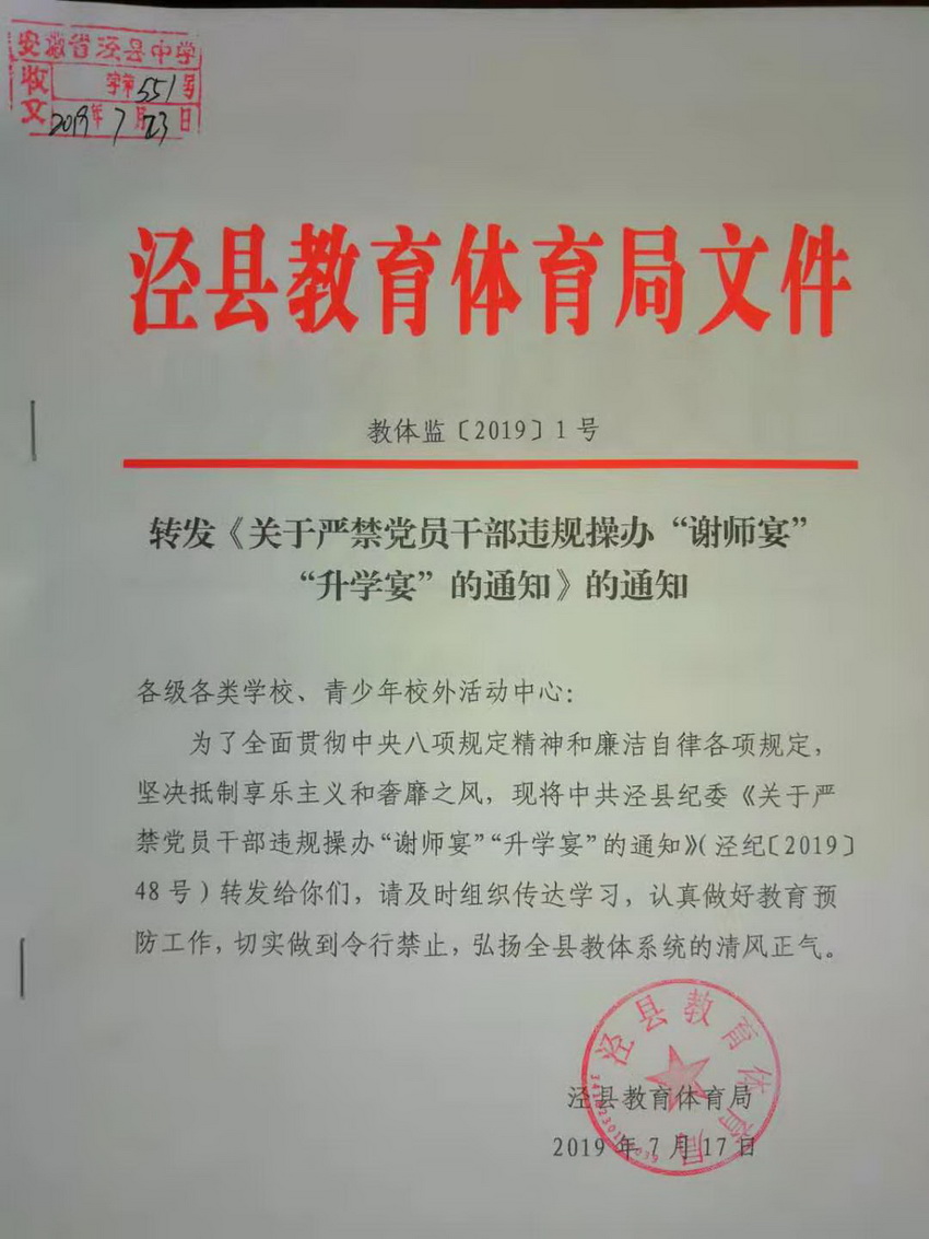 《wap.sports918.com严禁党员干部违规操办“谢师宴”“升学宴”的通知》