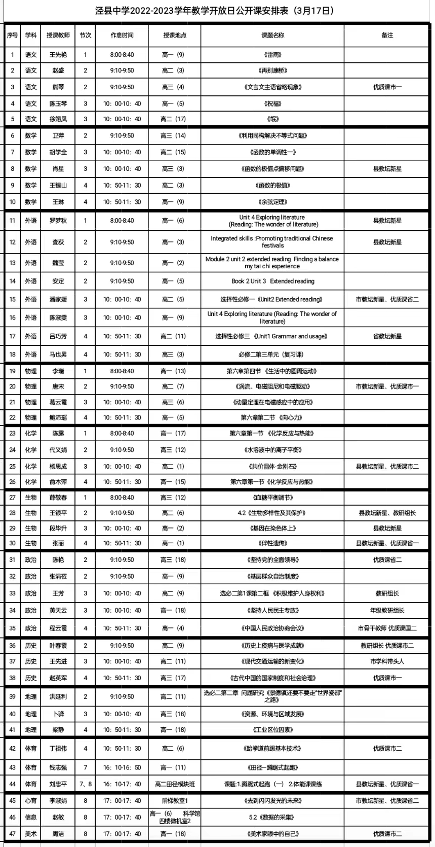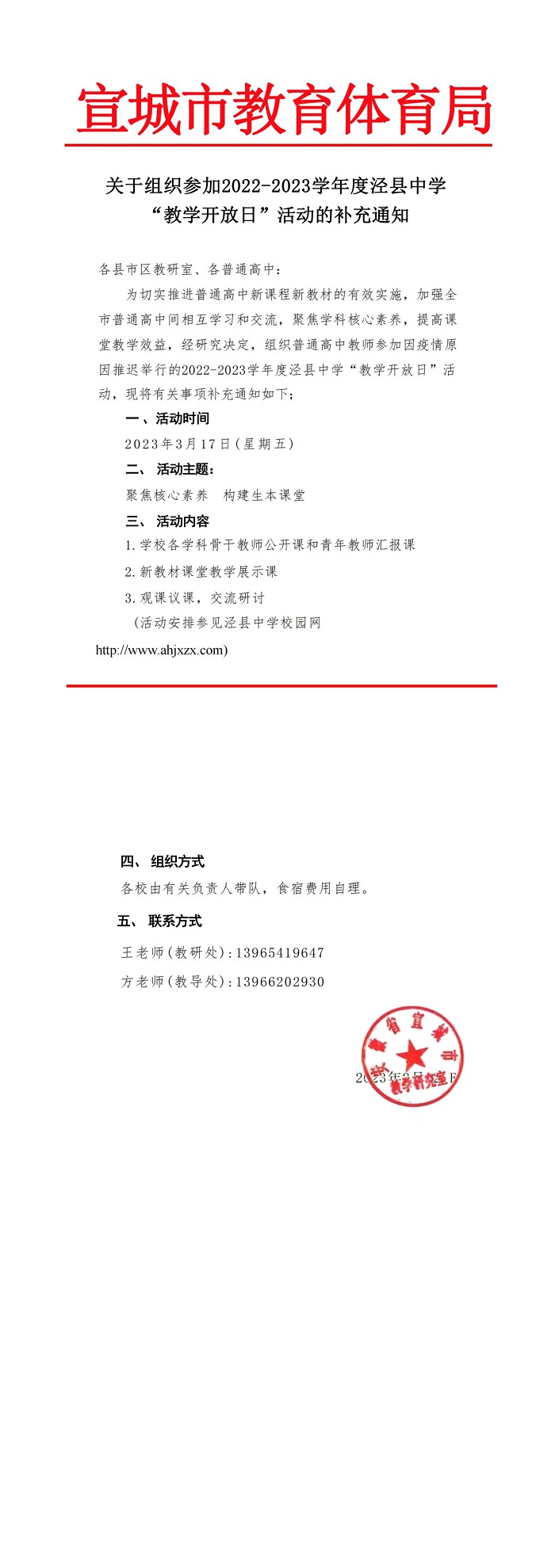 wap.sports918.com组织参加2022-2023学年年度泾县中学“教学开放日”活动的补充通知