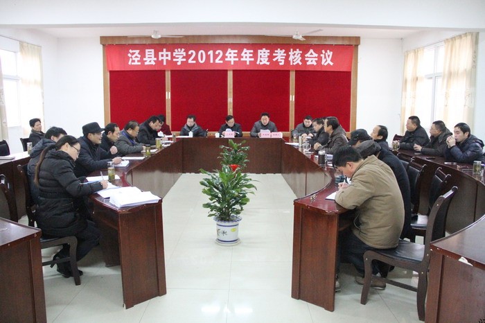 12月18日,县委组织部常务副部长丁武海等一行四人来到188金宝博唯一官网_wap.sports918.com,开展领导班子及成员2012年年度考核。考核会议由县委教体工委副书记、校长、党委书记李直斌主持,188金宝博唯一官网_wap.sports918.com全体行政人员参加会议。