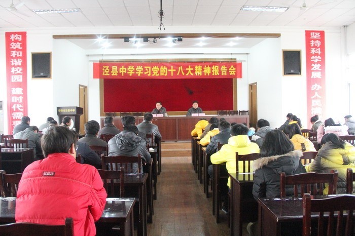 1228上午,188金宝博唯一官网_wap.sports918.com举办学习党的十八大精神报告会,邀请县委讲师组组长马春笋作宣讲。188金宝博唯一官网_wap.sports918.com全体党员、行政干部及部分学生代表参加报告会。报告会由校长、党委书记李直斌主持。