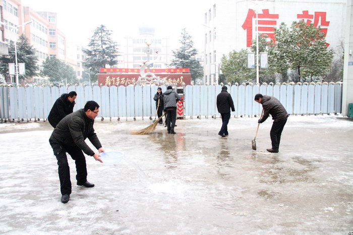 三是及时清理校园内的积雪。雪停后学校积极组织力量铲除校园内主干道和大门前的积雪,以确保广大师生的通行安全。